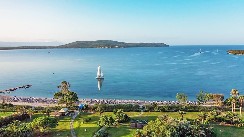Circondato dal verde nella splendida cornice del parco naturale di Porto Conte, il complesso si affaccia sulle acque cristalline dell'area marina protetta di Capocaccia.