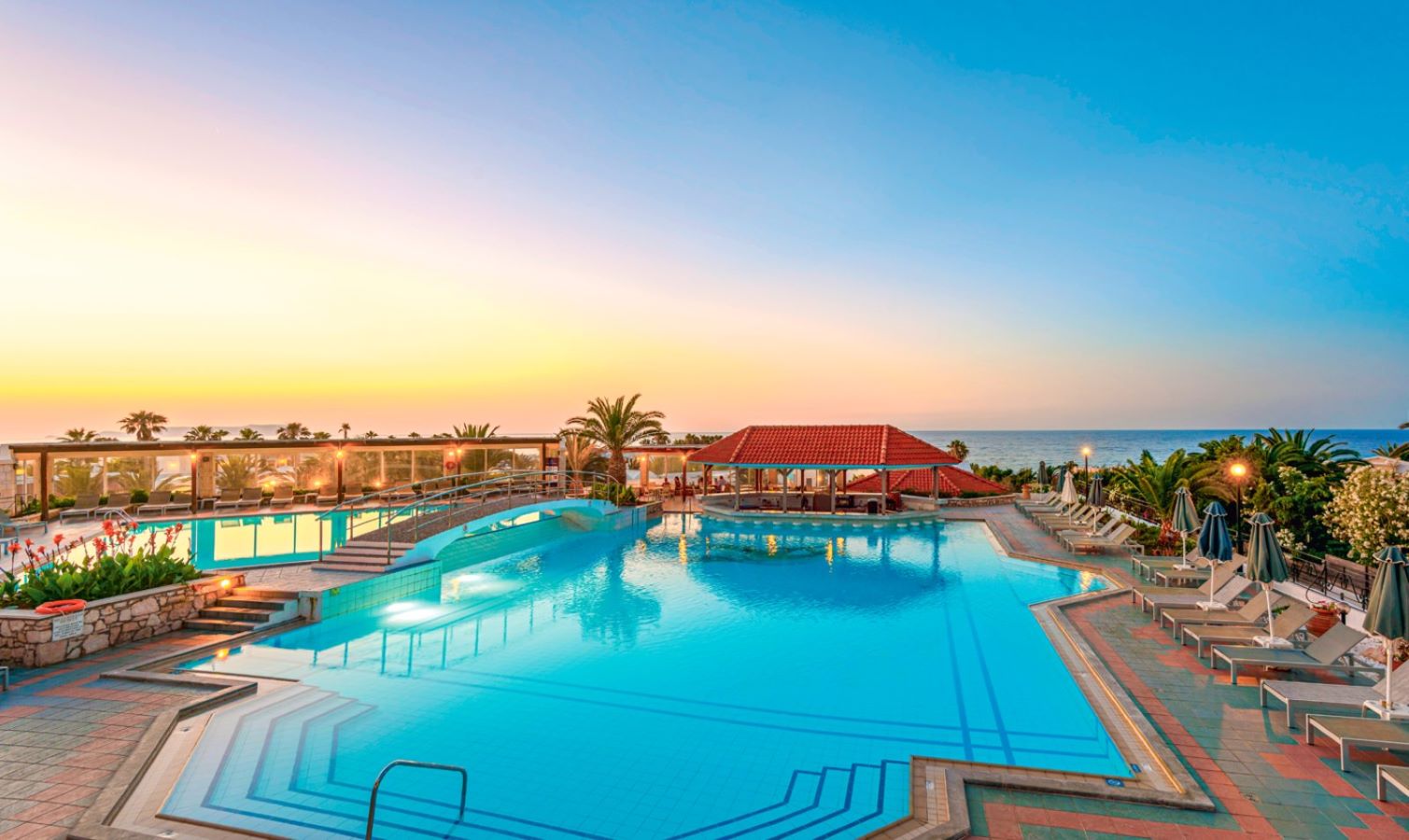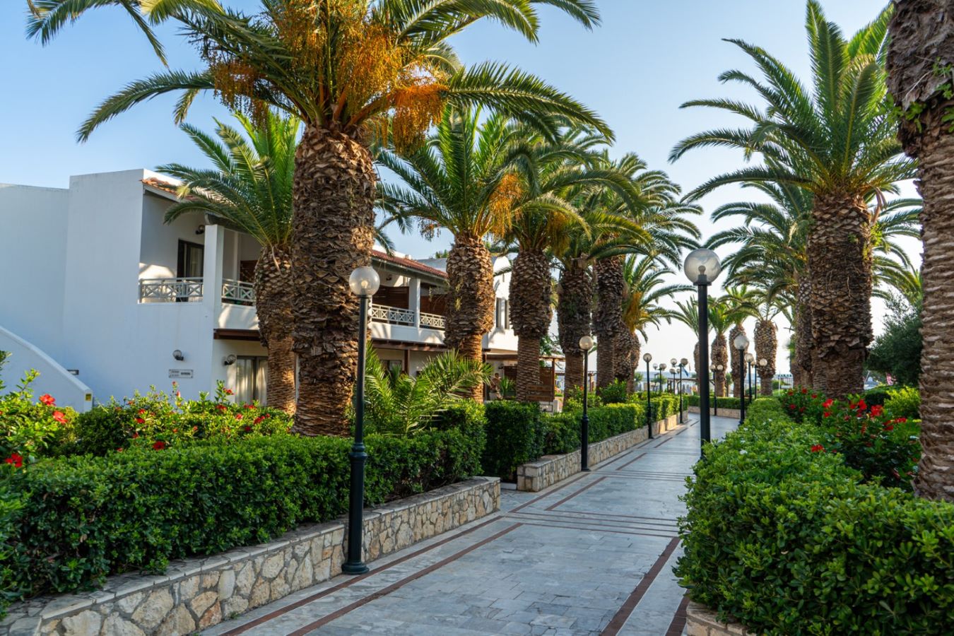 Situata in località Anissaras, a circa 2,5 km da Hersonissos e 25 km dall’aeroporto e dalla città di Heraklion. L’aeroporto di Chania dista circa 169 km. Fermata bus di linea di fronte all’hotel. Costituita da vari edifici in stile bungalow a due piani e da un corpo centrale che ospita i servizi comuni, piacevolmente inseriti in colorati giardini.