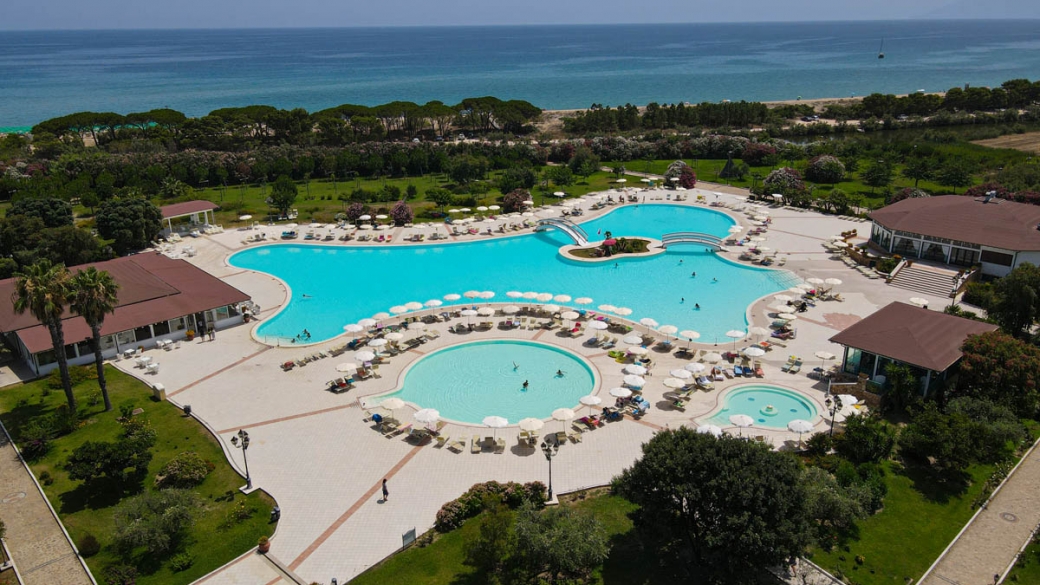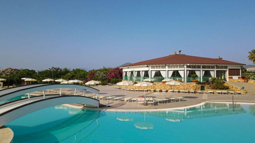 A 150 m, ampia, di sabbia, attrezzata, raggiungibile attraverso vialetti pedonali. Servizio spiaggia incluso nella Tessera Club a partire dalla 3° fila (1 ombrellone + 2 lettini a camera).